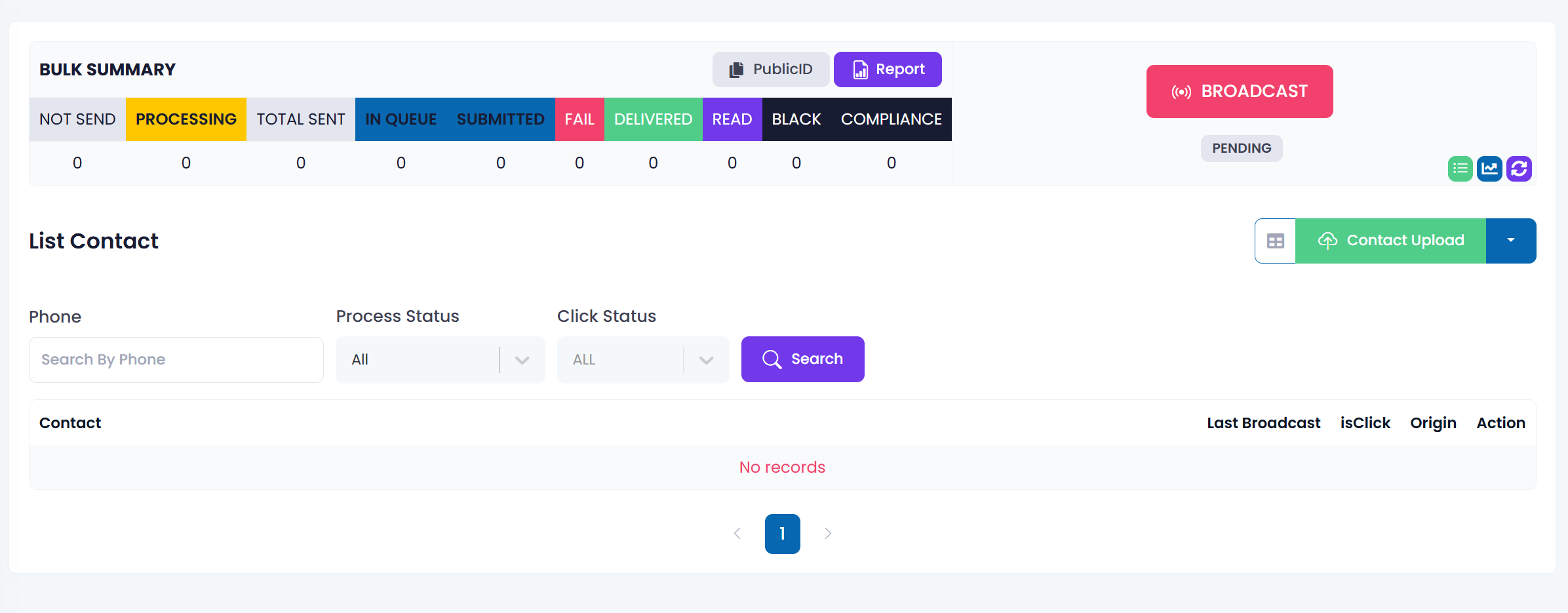 Setelah terupload, klik tombol "BROADCAST" berwarna merah.